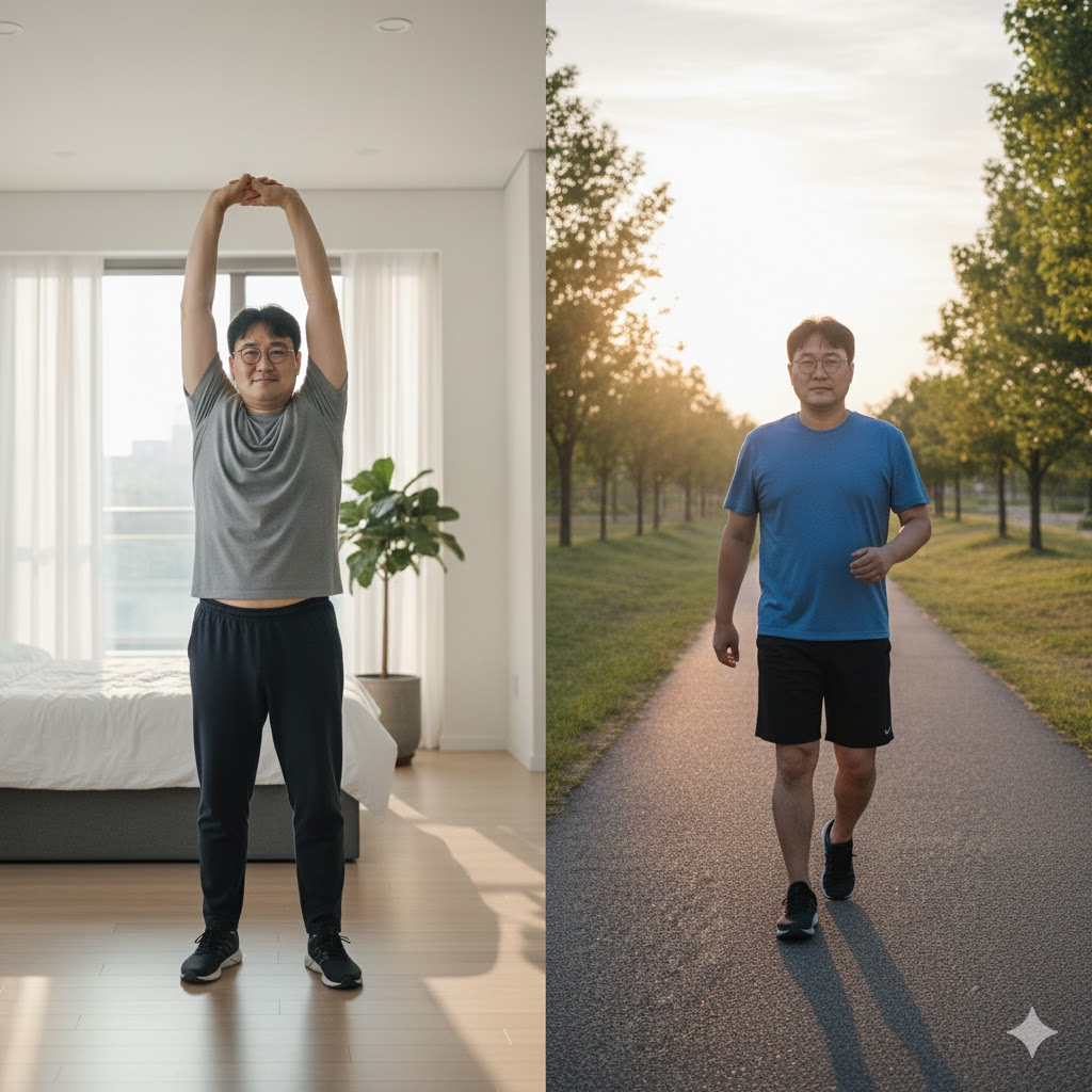 STEP 1: 아침 공복 10분, 지방 태우는 '모닝 스트레칭 & 가벼운 걷기'