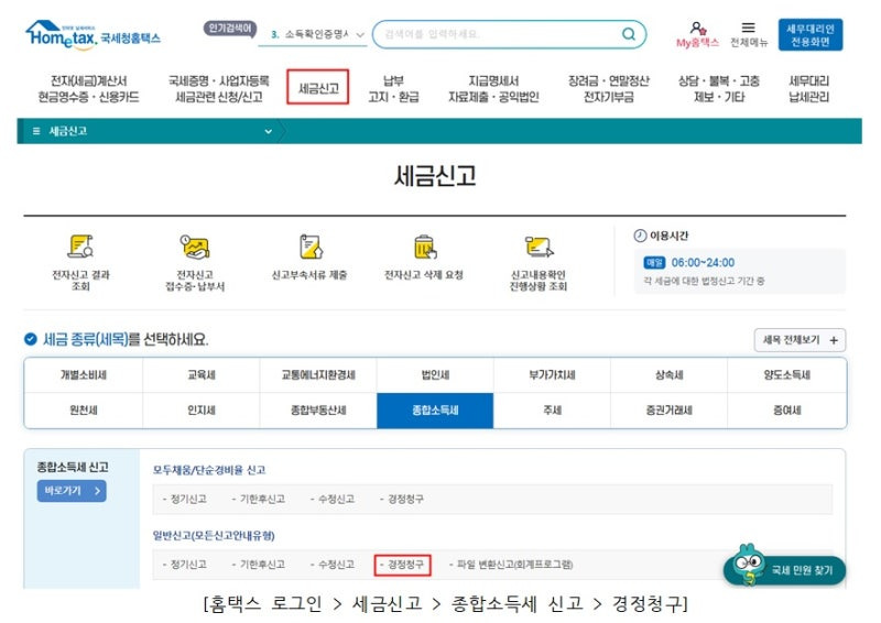 📌 홈택스 → 경정청구 메뉴에서 신청